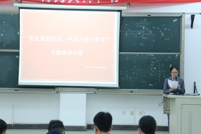 ​ 为深入“不忘初心、牢记使命”主题教育,引导青年学生树立坚定的理想信念,铸牢忠诚之魂,做新时代六有大学生,2019年11月14日,外国语学院在文C多媒体教室举办了“坚定理想信念,争做六有大学生”主题演讲比赛。