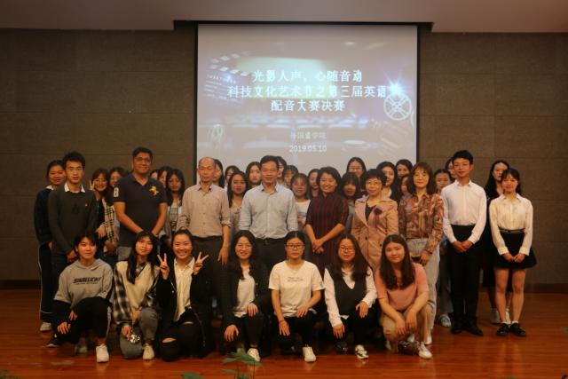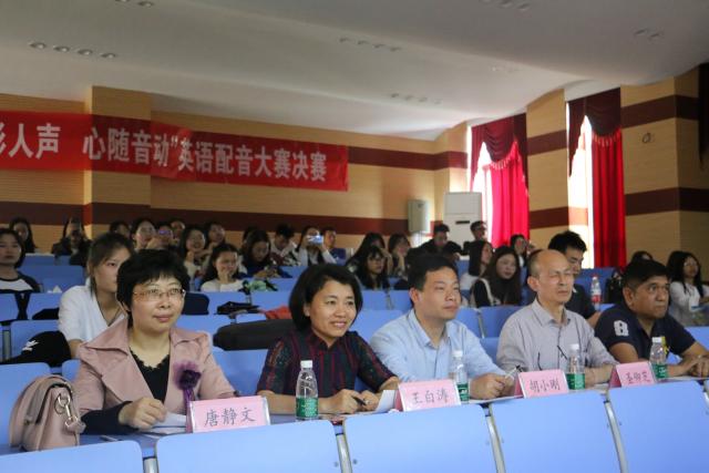 为进一步提高同学们学习外语的积极性,彰显语言文化的魅力2019年5月10日下午两点半,外国语学院在艺术学院演播厅举办科技文化艺术节之“光影人声,心随音动”第三届英语配音大赛决赛。外国语学院党委副书记、副院长胡小刚,圣仰芝教授,王白涛教授,唐静文教授以及外教Romeo担任比赛评委,外国语学院广大师生观看了比赛。