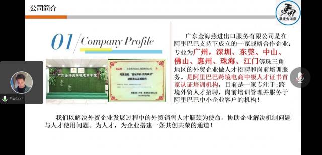(图/袁小清 文/袁小清)为进一步搭建学生就业平台,拓宽学生就业渠道,外国语学院于2023年2月23日召开“外国语学院商务英语专业专场招聘会”。本次招聘会我院邀请了广东金海燕进出口服务有限公司的杨培锋老师在腾讯会议做线上主讲。