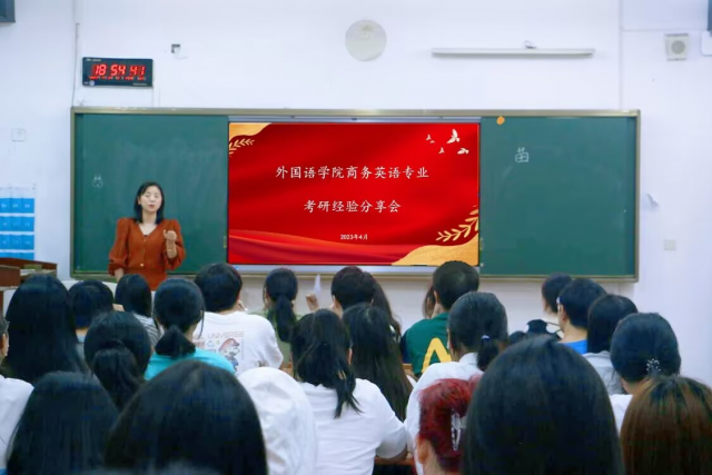 (图/袁小清 文/袁小清)为加强学生对考研的认识和了解,进一步明确考研规划营造良好的考研学习氛围,让学子们了解更多与考研相关的信息,2023年4月18日、19日晚,外国语学院连续开展了“‘研’路有你,‘语’你同行”考研经验分享交流会活动,邀请考研优秀学生代表钟群、应宗其、杨娇、凌凤等多位学子为同学们做考研分享。