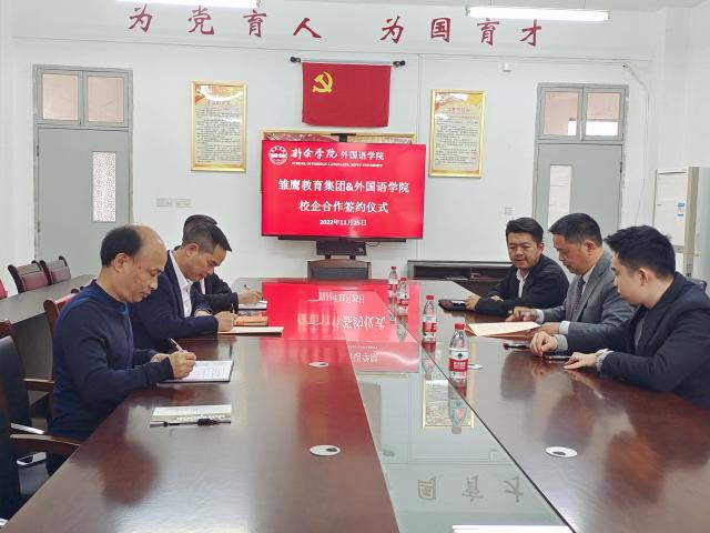 (文/袁小清 图/黄仁静)为进一步构建学生就业平台,增强校企合作联系,促进2023届毕业生落实毕业就业去向,11月25日,外国语学院邀请深圳市雏鹰教育投资有限公司来我院进行校企合作暨专场招聘会,外国语学院党委书记、院长刘华东,公司董事长郭阳钰及双方相关人员参加活动。