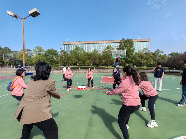 此次趣味运动会设有多个项目,包括同心击鼓、集体跳绳、趣味保龄球、飞镖和拖乒乓球跑等团体项目,旨在通过轻松有趣的比赛形式,促进教职工之间的交流与合作。外国语学院教师们积极响应,踊跃参与,充分展现了顽强拼搏、团结协作的精神风貌。赛场上,教师们个个奋勇争先,展现出与日常教学工作中不一样的风采,整个赛场充满了积极向上的氛围。
