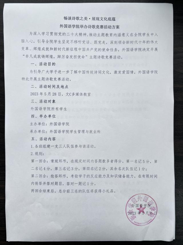 畅谈诗歌之美·展现文化底蕴 外国语学院举办诗歌竞赛活动方案