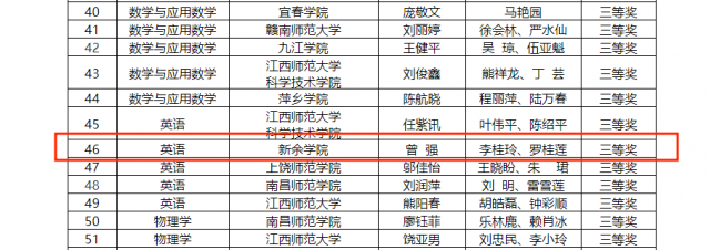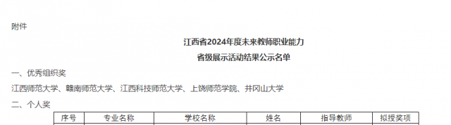 (图/文 章宙)在2024年5月25日至26日由江西省教育厅组织开展的“江西省2024年度未来教师职业能力省级展示活动”中,我院2021英语1班曾强同学在李桂玲、罗桂莲老师的指导下,荣获三等奖。