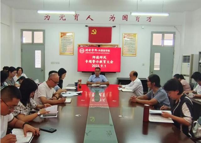 (图/黄仁静 文/肖忠华)为切实加强师德师风建设,不断提高教师思想政治素质和职业道德水平,9月1日下午,外国语学院召开师德师风建设专题会议。会议由外国语学院党委书记、院长刘华东主持,全院教师参加了会议。