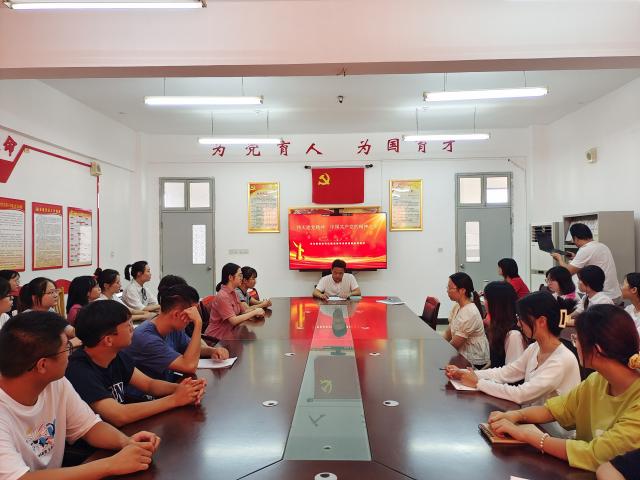 ​2021年9月29日,外国语学院党委胡小刚在党员活动室开展了习近平总书记“七一”重要讲话宣讲活动,本次宣讲活动的主题为 “伟大建党精神:中国共产党的精神之源”。宣讲会由外国语学院团委书记李胜男主持,外国语学院学生会干部参加了宣讲会。