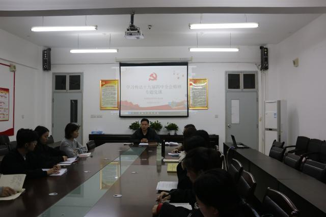 外国语学院党委副书记胡小刚召开传达学习党的十九届四中全会精神专题讲座