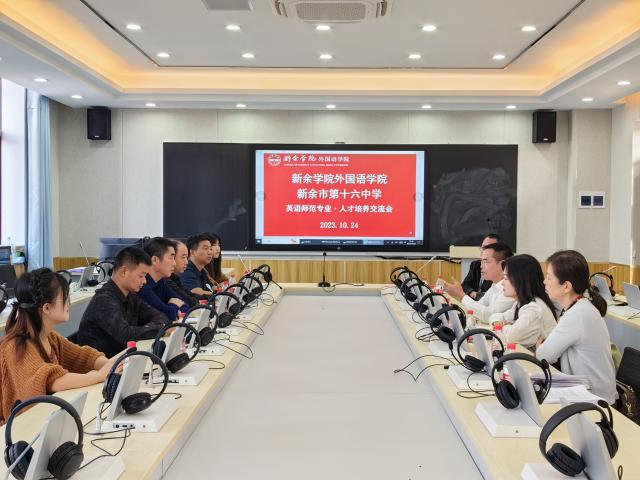​为进一步贯彻落实教育部对普通高校师范专业人才培养要求,提升外国语学院师范专业人才培养质量,更好服务地方基础教育高质量发展,10月25日,外国语学院邀请新余市第十六中学赴我校举行英语师范专业人才培养交流会。会议由外国语学院党委书记、院长刘华东主持,新余市第十六中学刘永军副校长、廖晓桃副校长、傅小敏副校长、黄伟主任、张丹丹及陈玉蓉老师一行6人,外国学院全体行政坐班人员及英语专业教师参加了会议。