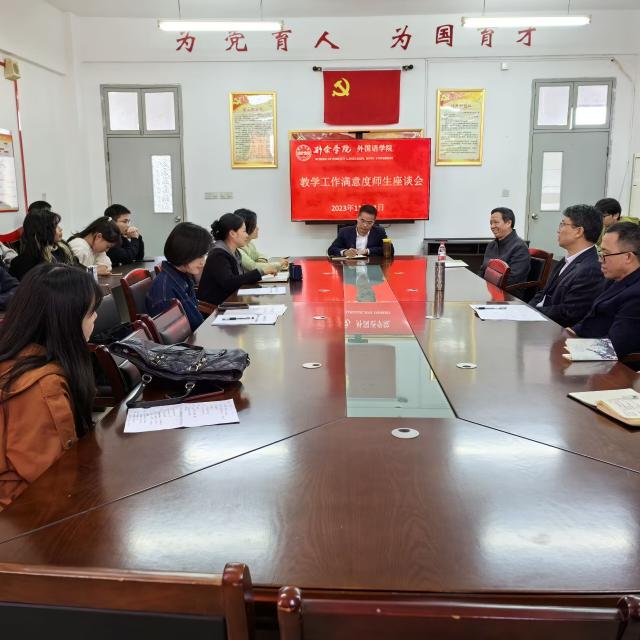 ​ (图/文 赵阿妮)为更好迎接审核评估,进一步强化OBE理念,提高教育教学质量,营造良好的教学氛围和质量文化,根据学校有关教学督导工作要求,外国语学院于11月21日召开了教学工作满意度师生座谈会。会议由外国语学院教学副院长张莉同志主持,校督导组、外国语学院院领导、学院督导组、教研室主任、教师代表、学生代表参加了会议。