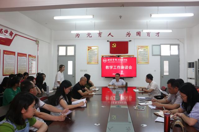 为了进一步落实“以生为本”的理念,进一步推进“学党史、办实事”,全面了解广大学生对学院教育教学、管理服务等方面的意见和建议,充分调动学生参与管理的积极性和主动性,进一步增强我院教学质量和管理服务工作的针对性和实效性,提高广大学生的学习热情。外国语学院6月8日下午在党员活动室召开了教学工作座谈会。会议由外国语学院党委书记、院长刘华东主持,外国语学院全体行政坐班人员、学院教学督导组相关同志与外国语学院各班学生代表参加了会议。
