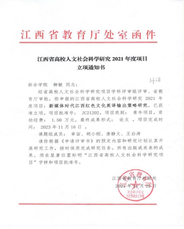 该课题期望通过研究能助力中国文化“走出去”的战略,助推中国文化走向世界,让世界了解中国、理解中国。借鉴新媒体的媒介手段,契合当下碎片化信息时代的读者需求,尝试为江西红色文化的英译输出寻找一条更加符合受众认知规律的传播途径,推动中国文化走向更多的大众读者。