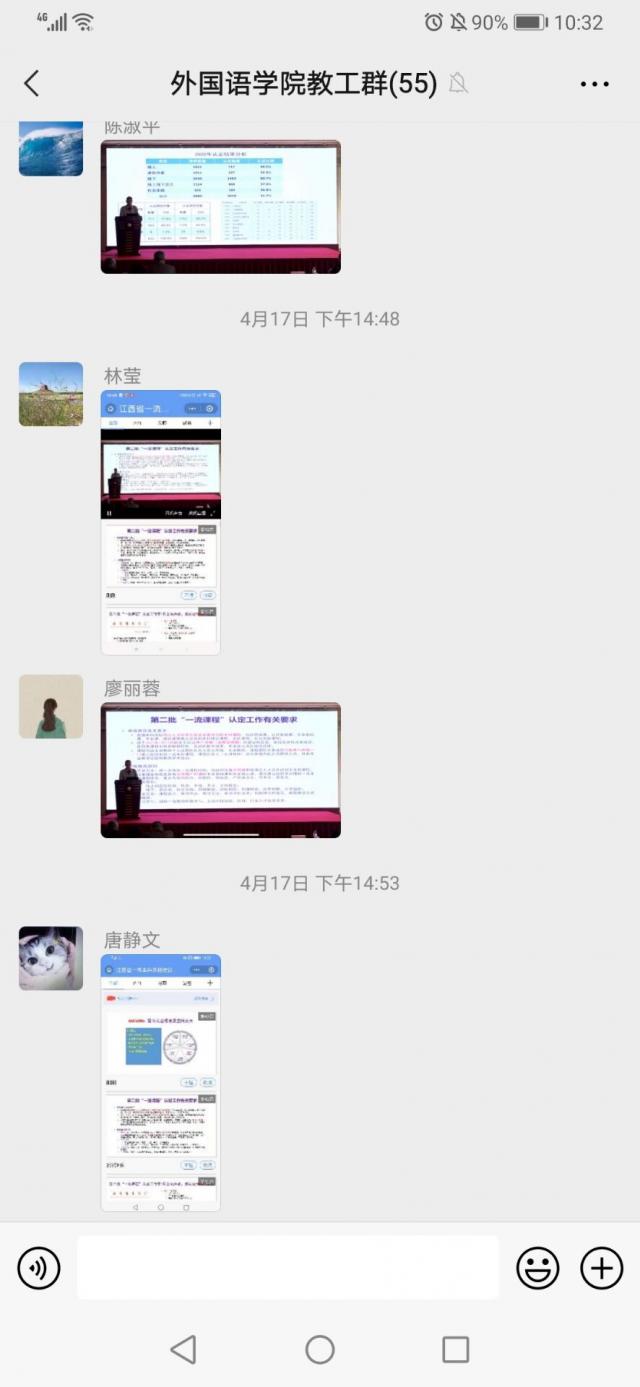 为推动落实金课建设以及课程思政示范项目建设工作,引导教师投身于以学生为中心的教学方法改革、提升教师的教育教学水平,外国语学院组织本学院教师收看了会议视频直播。我院教师非常珍惜此次学习机会,积极观看研讨会会议直播,并在线展开讨论,相互交流学习心得与体会,所有教师一致认为:这次会议格局高、内容充实,是“及时雨”,为大家解决了课程思政改革方面的很多疑惑,拓展了课程思政改革的思路,为如何充分发挥“思政课程”与“课程思政”协同效应指明了方向。