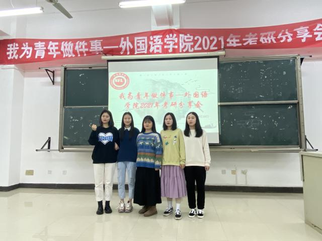 乘着这股东风,外国语学院开展了主题为“我为青年做件事之外国语学院2021年考研经验分享会”,分享会共分为三期,14位成功上岸的考生分别为学弟学妹分享考研经验,帮助他们解决考研疑问。