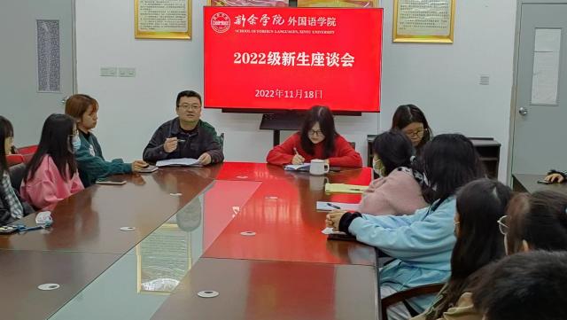 “循梦而行,向阳而生”,为更好了解新生对学院教育教学、管理服务等方面的意见建议,增强学院对学生教育管理的针对性和学生参与学院事务的积极性,外国语学院于11月18日下午5时在党员活动室召开新生座谈会,副院长张莉、罗辉,学生科负责人袁小清及部分大一新生参加本次座谈。