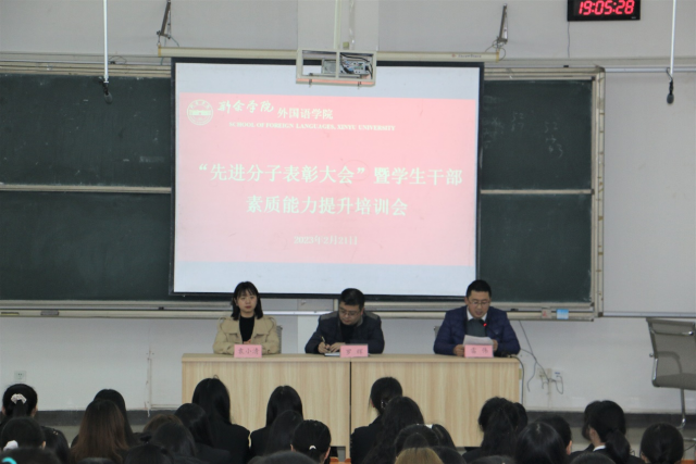 (图/雷伟 文/雷伟)为加强学生干部队伍建设,提升工作成效,2月21日,我院召开外国语学院先进分子表彰大会暨学生干部素质能力提升培训会。出席本次会议的有外国语学院副院长罗辉,学生科科长袁小清,院团委书记雷伟及外国语学院全体学生干部。本次会议由外国语学院学生会主席刘微主持召开。