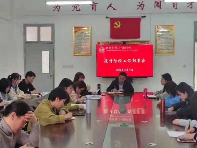 为进一步落实学校疫情防控工作要求,筑牢疫情防控“防火墙”,外国语学院于2022年3月11日在党员活动室召开疫情防控工作部署会,学院党委书记、院长刘华东出席会议并讲话,学院全体辅导员、班主任及班长参会。会议由学院党委副书记谢懿主持。