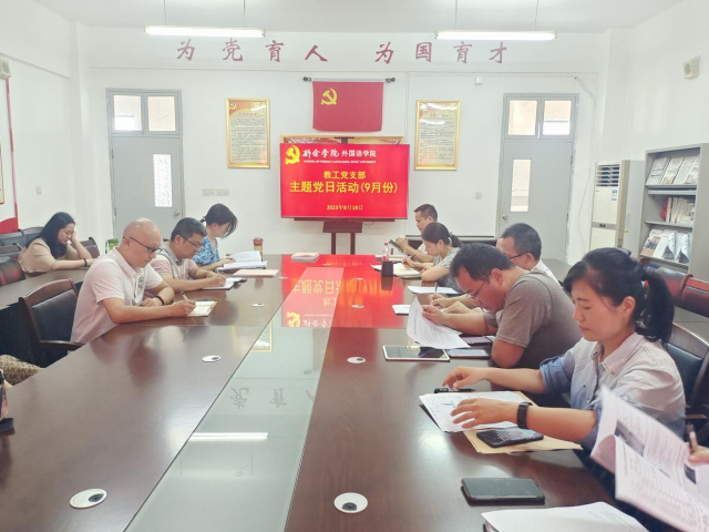 (图/黄仁静 文/黄赤强)为促进基层党组织在新一轮本科教育教学审核评估评建、师范专业认证和课程思政建设等工作中充分发挥战斗堡垒作用,9月19日,外国语学院教工党支部在学院党员会议室组织开展了9月份主题党日活动,学院全体教工党员参加活动。活动由党支部书记黄赤强主持,学院党委书记、院长刘华东参加活动并作点评讲话。