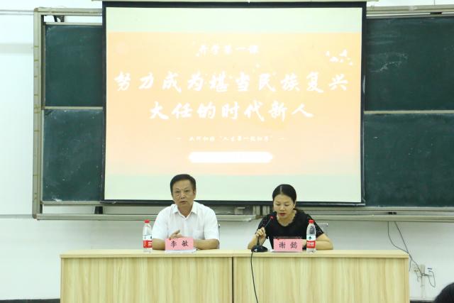 (图/付初蕾 文/付初蕾)为切实做好学生思想政治教育工作,进一步推动习近平新时代中国特色社会主义思想进教材进课堂进头脑,9月21日,校党委委员、副校长李敏以《努力成为堪当民族复兴大任的时代新人--如何扣好“人生第一粒扣子”》为主题,为外国语学院20223级新生讲授“开学第一课”。宣讲会由外国语学院党委副书记谢懿主持,外国语学院2023级班主任代表和全体新生聆听了此次宣讲。
