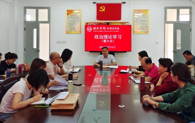 ​4月12日,外国语学院开展学习宣传贯彻“易炼红同志在省委教育工作领导小组2022年第一次全体会议上的讲话精神”的大学习大讨论活动,会议由外国语学院党委书记、院长刘华东主持,学院全体教师参加会议。
