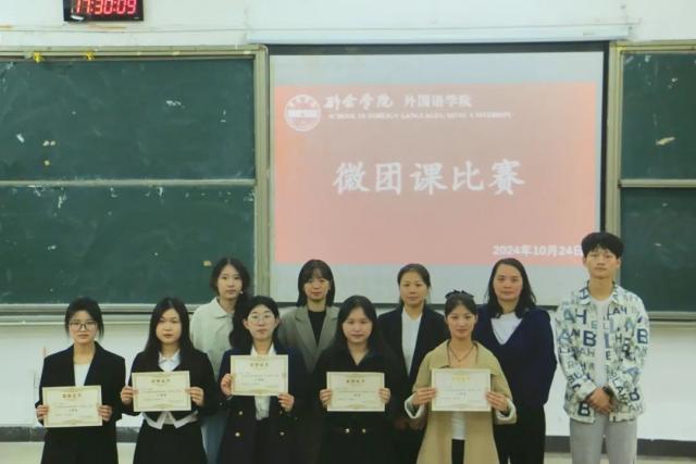 经过激烈角逐,众多选手各展风采,微团课比赛圆满落幕,一等奖获得者为23英语2班廖婉瑜,二等奖获得者为23英语2班肖雨欣,22商英5班邓霞,三等奖获得者为24商英4班高娅文、24商英3班刘婷、23商英1班何佩柔。