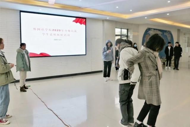 为促进各民族学生交往交流,增进师生间的情谊,培养学生互帮互助,团结协作的精神品质,外国语学院于2020年12月4日在文科楼C一楼大厅举办少数民族学生趣味运动会,活动由外国语学院辅导员袁小清老师主持。