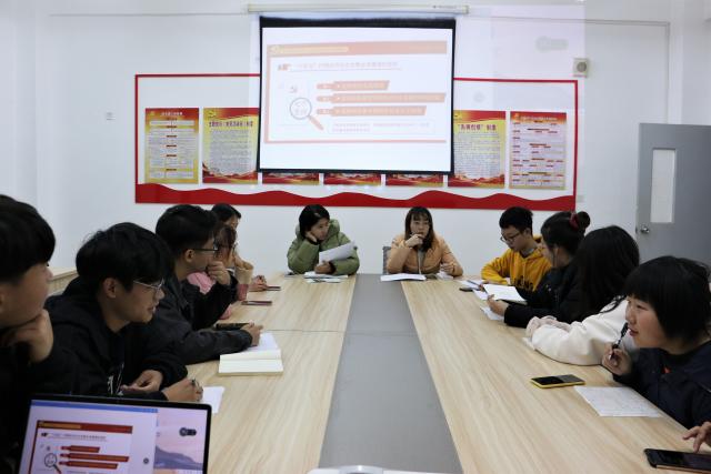 为深入贯彻学习十九届五中全会精神,动员广大团支部立即行动起来,我院于2020年11月27日晚八点于学生党员活动室召开了党的十九届五中全会精神专题学习会。会议由外国语学院团委李胜男主持,参加此次会议的有辅导员李泠毅及团干、学生会工作人员等。
