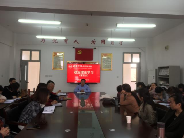 3月17日下午,外国语学院在党委会议室开展了学习“新余学院2021年全面从严治党工作会议”精神的主题党日活动。外国语学院所有教工党员参加了活动。