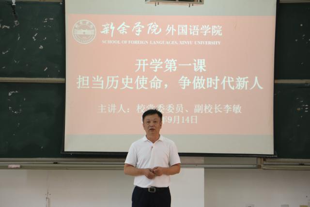 9月14日下午,在外国语学院2021年新生见面会上,校党委委员、副校长李敏为全体新生上了入学的第一堂有温度、有深度的思政课。思政课的主题是“担当历史使命,争做时代新人”。