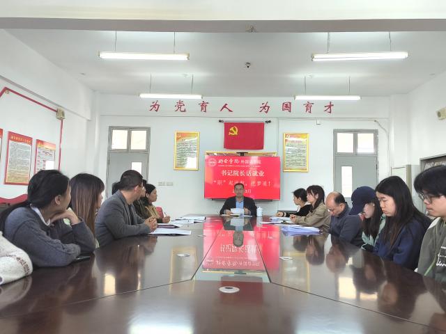 ​(图/文 袁小清)为贯彻落实学校就业工作会议精神,进一步加强学生就业指导服务效果,更好地推进我院毕业生顺利毕业,尽早就业。3月20日,外国语学院在文C二楼党员活动室举办“书记院长话就业”活动。学院党委书记、院长刘华东以《“职”起远航,把梦追》为题,为学院师生讲授了一堂精彩的“开学就业第一课”。学院全体辅导员、2024届毕业班班主任及学生干部、学生党员代表在座聆听,活动由学院党委副书记谢懿主持。