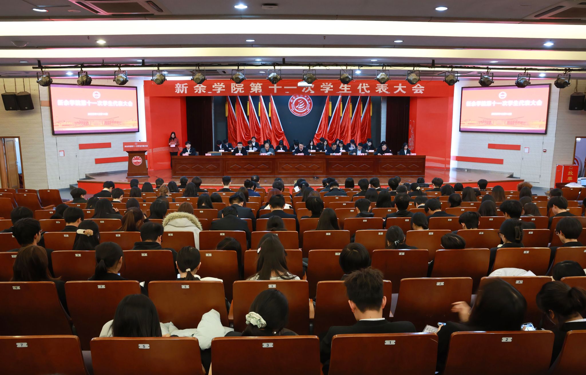 12月14日,新余学院第十一次学生代表大会在学校图书馆学术讲堂召开。校党委委员、副校长周书民,校党委委员、组织部部长周文生,校党委委员、统战部部长姚伟出席开幕式。学校相关部门主要负责人,各二级学院分管共青团工作负责人,市学联主席,兄弟高校学生会代表,各二级学院团委负责人,全校164名学生代表参加大会。下午14时40分,主持人宣布大会开幕,会议在激昂的国歌声中拉开序幕。周书民代表学校党委对大会的召开表示热烈祝贺,...