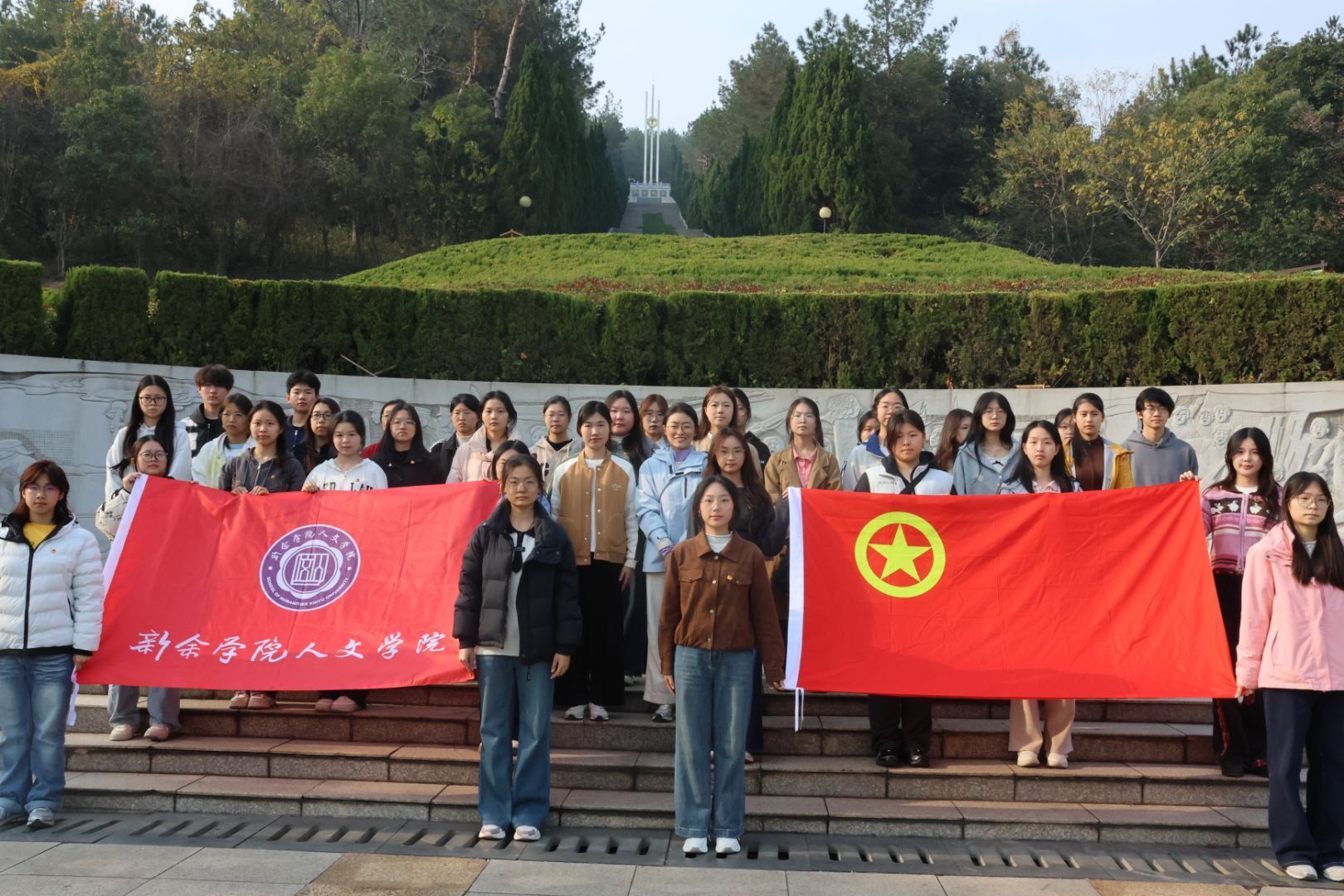 国家公祭日来临之际,为引导团员青年传承红色基因、筑牢理想信念,12月10日,人文学院团委组织新老团员赴仰天岗革命烈士纪念碑开展红色研学活动。团员青年以实地探访、沉浸式学习的方式追寻先辈足迹,在庄重仪式与实践体验中践行新时代青年的责任担当。活动以肃穆的新团员入团仪式拉开序幕。在革命烈士纪念广场,全体人员整齐列队,向革命烈士默哀,肃穆的氛围中满是对先烈的缅怀与敬意。伴随着雄壮的国歌声响起,团员青年们的目光坚定而炙热,...